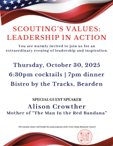 The Great Smoky Mountain Council of Scouting America is divided into five districts serving 21 counties in East Tennessee. Wherever you live, there’s a pack, troop, crew, ship, or post led by dedicated volunteers associated with a school, church, or civic organization near you.
